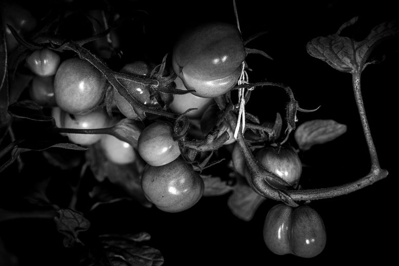 The photo series "Malle", started in 2023, looks at the process of growing a tomato plant as a relationship between two beings, which at times appears as symbiosis, at times as exploitation.